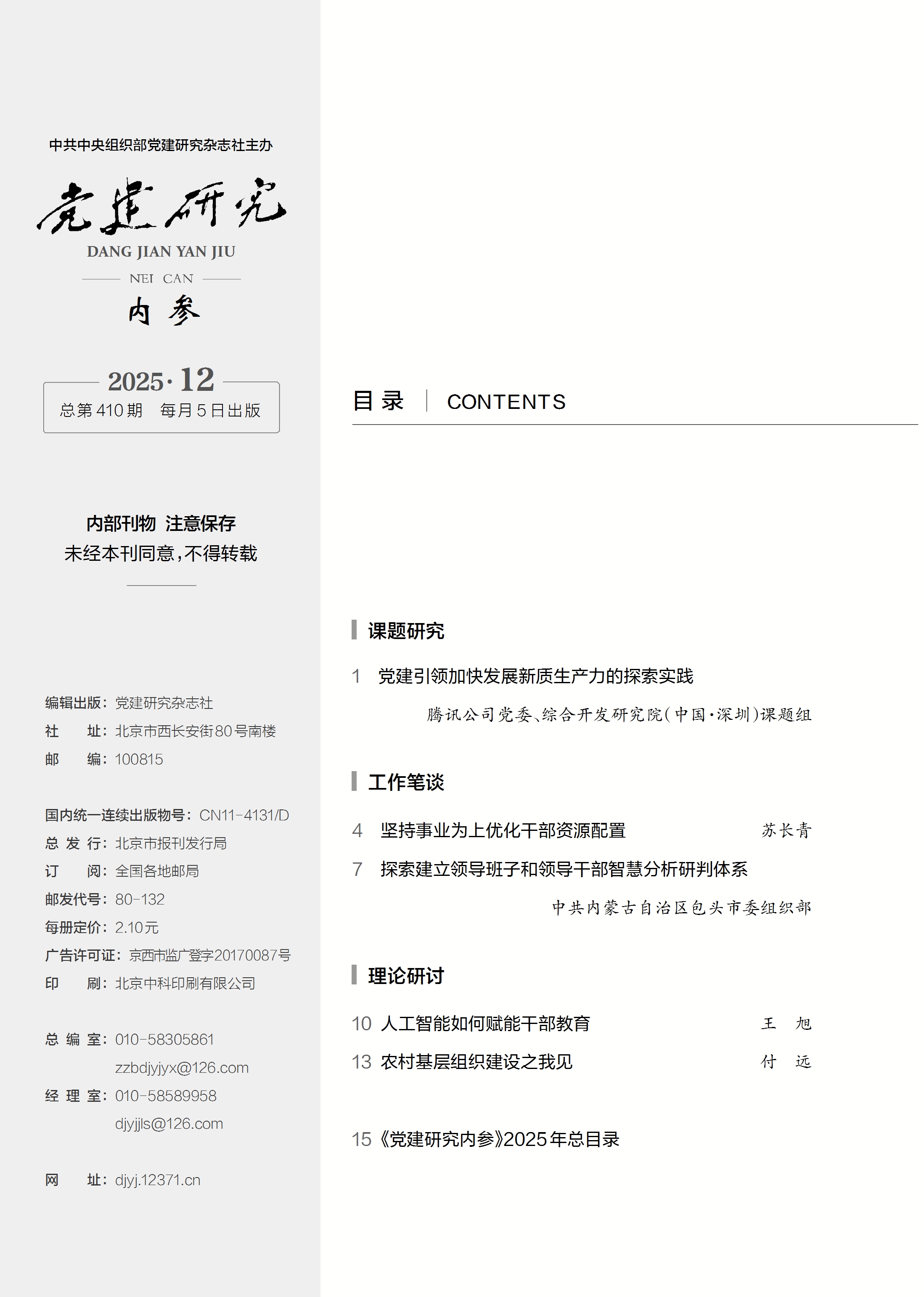 《党建研究内参》2025年第12期目录